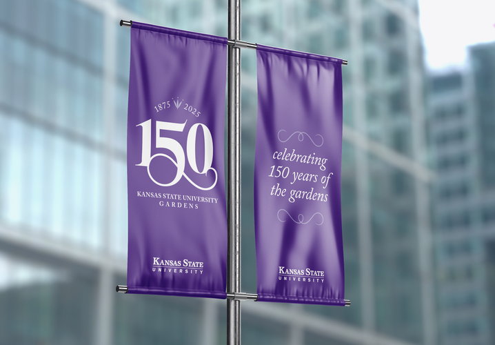 For the 150th anniversary of the Kansas State University Gardens, a commemorative logo was created to honor the gardens’ long-standing history while celebrating the future ahead. The design draws inspiration from the swoosh element in the Friends of the Gardens logo, which is echoed in the anniversary mark. Staying within K-State brand standards, Adobe Caslon served as the foundation for the “150,” with added embellishments and refinements to create a sense of elegance and distinction. The icon at the top incorporates a piece of the Friends of the Gardens logo, tying the design back to its roots while marking this important milestone.